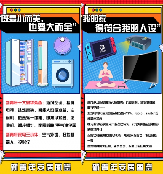 今年以来,受到新冠疫情及原材料价格上涨等因素影响,家电市场持续承压。在一系列政策引导及产品研发创新举措下,家电市场仍然呈现出韧性强、潜力大的基本面。 近日,中国新闻周刊联合苏宁易购发布《2022年新青年安居图鉴》,年轻人成为家消费新生代主力军,呈现多种家电家装消费新趋势。从刚刚结束的五一小长假消费数据来看,众多家电新品类获得消费者青睐,以旧换新成为家电消费增长重要源动力。消费群体、产品焕新,新一轮升级换代开启,家电行业在压力之下演绎新故事。 家消费新生代主力军 曾有人调侃,父母装修的家,是在有限的空间里,创造出魔幻的可能。随着90后群体日渐成熟,成立家庭,他们开始成为家消费主力军。对90后群体而言,家不只是房子,满足基本的居住需求,更是表达自己生活方式的载体。 据中国新闻周刊联合苏宁易购发布的《2022年新青年安居图鉴》(以下简称图鉴),新青年群体在家电选购方面呈现“既要小而美,也要大而全”的特点。彩电、冰箱、洗衣机承载着人们对家电“三大件”的最初记忆,如今,90后已经将“装备”升级为“十三香”,也就是“十大件”加“三小件”。 图鉴显示,新青年十大豪华装备分别为:新风空调、投屏电视、洗烘套装、智能大容量冰箱、洗碗机、微蒸烤一体机、即热净水器、洗地机、智控烟灶、家庭影院/空气净化器;新青年家电三小件为:空气炸锅、扫地机器人、投影仪。 此外,装修风格与电器适配、全屋智能定制、成套系购买、产品与服务一站式解决等成新青年家电家装消费大势所趋。最受青年喜爱的3种家电套购组合为:空调+热水器+彩电;冰箱+洗衣机;净水器+空气净化器+洗碗机。 ![]() 新青年消费群体智能、一体、多元化的家电消费需求对于家电品牌商、零售商提出了更多要求,主力消费人群的迭代也将为家电市场注入新一轮产品研发与场景改造活力。 新品类、以旧换新成重要增长源 相对于家电大盘承压运行,新兴品类销售则保持快速增长势头。奥维云网推总数据显示,今年一季度洗碗机零售额同比增长20.6%,二季度零售额预计同比增长23%。苏宁易购发布的五一消费数据显示,洗地机销量同比上涨133.7%,果蔬清洗机销量同比上涨346.7%,主打无油空气炸锅销量同比上涨740.8%。 新冠疫情带来“宅生活”时间增长,多种家电新品类满足解放双手、便捷生活的消费需求,成为消费者提升居家幸福感的神器,如集成灶、干衣机、洗烘一体机、洗地机、蒸烤一体机等品类,已经成为当下家电零售平台最热门搜索关键词。 此外,在家电行业整体进入存量换新发展阶段背景下,整体销量需求趋于稳定,产品均价受益于结构升级而稳步提升,以旧换新成为新一轮增长驱动力。日前,国务院办公厅印发《关于进一步释放消费潜力促进消费持续恢复的意见》,提出大力发展绿色消费、充分挖掘县乡消费潜力等举措。 ![]() 今年五一期间,苏宁易购响应各地促消费、绿色节能补贴、抗疫保供等政策,在北京、深圳、天津等百余城市开展家电3C惠民补贴、以旧换新服务等活动,苏宁易购门店换新订单环比增长87%,消费电子以旧换新业务环比增长65%。 在全国重点城市,政企促消费及绿色节能补贴拉动作用明显。五一期间,深圳市商务局开展对指定家电消费按售价15%进行补贴的活动,苏宁易购深度参产品供应与补贴发放,拉动家电销售同比增长35%;重庆苏宁易购联合商委发放消费券超10万张,重点推出绿色家电补贴,空调、冷柜及大冰箱增长明显;5月1日至5月3日,北京市商务局组织苏宁易购等10家企业开展绿色节能产品补贴,苏宁易购推出的“北京绿色节能消费节”覆盖全品类商品、全渠道客群,通过苏宁易购APP、门店发放大额补贴券,拉动环保家电同比增长103%,冰箱、冷柜、干衣机产品用券比例最高。同时,苏宁易购还联合中国家用电器服务维修协会,发起“百城万店千亿补贴”焕新潮活动,全面助推家电3C以旧换新、消费升级。 |