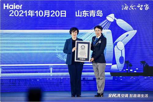 经认证官吴晓红现场见证,10017人在线上传挑战成功,海尔空调获“1小时上传至抖音平台最多的清洗空调视频”吉尼斯世界纪录称号。