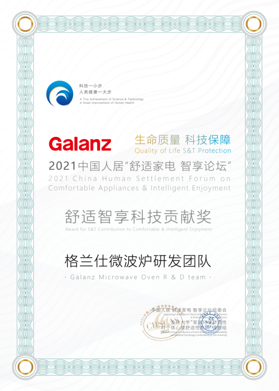11月25日,由中国家用电器协会指导、中国家电网主办的2021中国人居“舒适家电 智享论坛”于北京举行,论坛以“从心出发为爱而生”为主题,探寻大变局下的家电产业如何破局发展。在此次论坛中,格兰仕获“舒适智享领军品牌”,格兰仕RT微蒸烤一体机获评“舒适智享型号”,同时微波炉研发团队获颁舒适智能科技贡献奖。  随着人们生活水平的提高,“舒适”一词越来越成为家电消费关注的焦点。本届论坛上,以格兰仕RT微蒸烤一体机为代表,集健康、智能、多功能集成的“舒适家电”成为被关注的焦点。 格兰仕RT微蒸烤一体机融合了微波、蒸、烘烤三大功能,满足了用户在有限的空间内提高烹饪效率和饮食体验的需求;针对大块肉类配置了105℃快蒸模式,相比传统100℃蒸汽,105℃的过热蒸汽更细腻,能深层透蒸油脂,速度更快,口感更佳,也更加健康。 在寸土寸金的当下,留给家电的面积不断减少,而集成式家电已逐渐成为家电发展趋势。格兰仕RT微蒸烤一体机将多种烹饪功能进行了高度结合,通过微波、纯蒸、烘烤三合一,满足一机多用的空间需求。  格兰仕RT微蒸烤一体机在功能集成的基础上,将每一样烹饪模式都发挥到了极致。变频微波可针对食材差异多档调节火力,保证微波烹饪水分不流失;大汽量直喷蒸更是通过双蒸模式,让同种食材拥有两种美味:蒸汽搭配烘烤,成就独特的蒸汽嫩烤,用水火交融的方式激发激发食材外焦里嫩的多重口感,完美复刻专业大厨出品。 此次论坛,除了格兰仕RT微蒸烤一体机获得舒适智享型号称号,格兰仕微波炉研发团队同时获得了舒适智享科技贡献奖。  在微蒸烤领域,格兰仕打造了全产业链配套模式,掌握了强大的自主创新实力。多年来,格兰仕一直致力于微蒸烤领域的技术创新与升级,不断夯实微蒸烤龙头地位。2021年C-BPI(中国品牌力指数)研究成果发布,格兰仕再次位列微波炉行业品牌力指数榜首,这是C-BPI指数发布11年来,格兰仕第11次位列第一;在2020年度中国顾客满意度指数(C-CSI)排名中,格兰仕微波炉、电烤箱同时居于榜首,在微蒸烤领域格兰仕的领先地位早已深入人心。 今年,格兰仕微波炉研发团队耗时十年最终攻克航天微波炉“登天”难题,顺利进入中国空间站为航天员提供烹饪服务。同时有亦将航天微波炉的能效优势赋能于后续开发的格兰仕DR空气炸微波炉等系列新品中,从空间集约、功能集成等方面实现技术与性能的创新。 随着消费市场的不断进化,消费者的需求也越来越多元,发展“舒适家电”正当其时。“科技一小步 人类健康一大步”,以用户为中心,格兰仕通过领先的科技、优质的产品、完善的服务,为广大用户打造有品位、有格调的品质生活,带来一站式的健康家电解决方案。